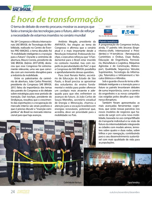 nais SAE BRASIL de Tecnologia da Mo- ANFAVEA, fez elogios ao tema do A programação do Congresso incluiu,